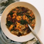 This change of seasons lentil bean stew is made for spring. Even though it’s spring, we’re still eating warming foods, especially at dinner time, because the seasons are in the midst of changing and the heat of summer is not quite here yet. It’s still not full-on grill, bbq and salad season yet, although we so look forward to those summer days. We’ve also still been craving comfort food while we continue to self isolate during covid. So, a lentil based stew with some root veggies that are kicking around from winter, is a good cozy dinner.