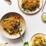 • Rice Noodles: Zucchini noodles can be added in at the step where you would have added in the cooked rice noodles to the stir fry.  No need to prep them before adding in.  They’ll cook lightly as you stir them together with the veggies, sesame oil and curry powder.