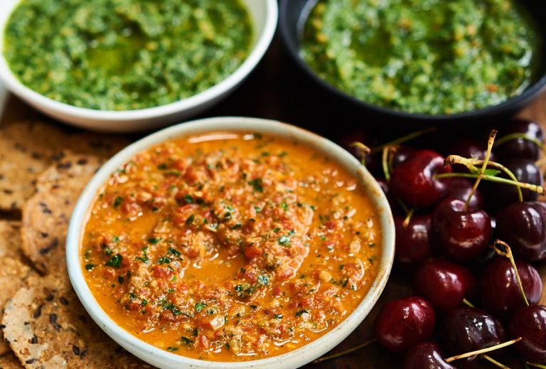 Roasted Red Pepper Walnut Salmon or Tempeh