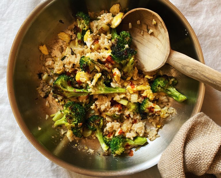 This is one of our easiest recipes and if you have day old rice, it will take you minutes to whip up. The blistered broccoli elevates this dish from plain-old fried rice to something that has more interest and flavour. It's seasoned simply with just tamari, lime and hot sauce but if you're looking for a bit more punch we've got options below.