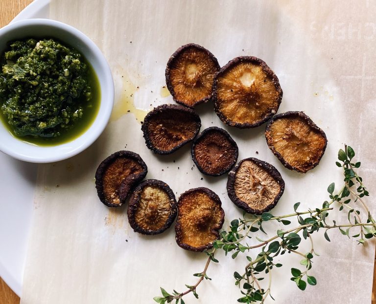 Mushrooms are nature's magical food, literally — they support immunity, they're rich in anti-inflammatory and cancer-fighting properties and heart healthy fiber called beta-glucan. It's sometimes hard to find creative ways to eat more mushrooms — well, here's the perfect way: as a crispy snack. You'll probably eat them within 5 minutes of coming out of the oven.